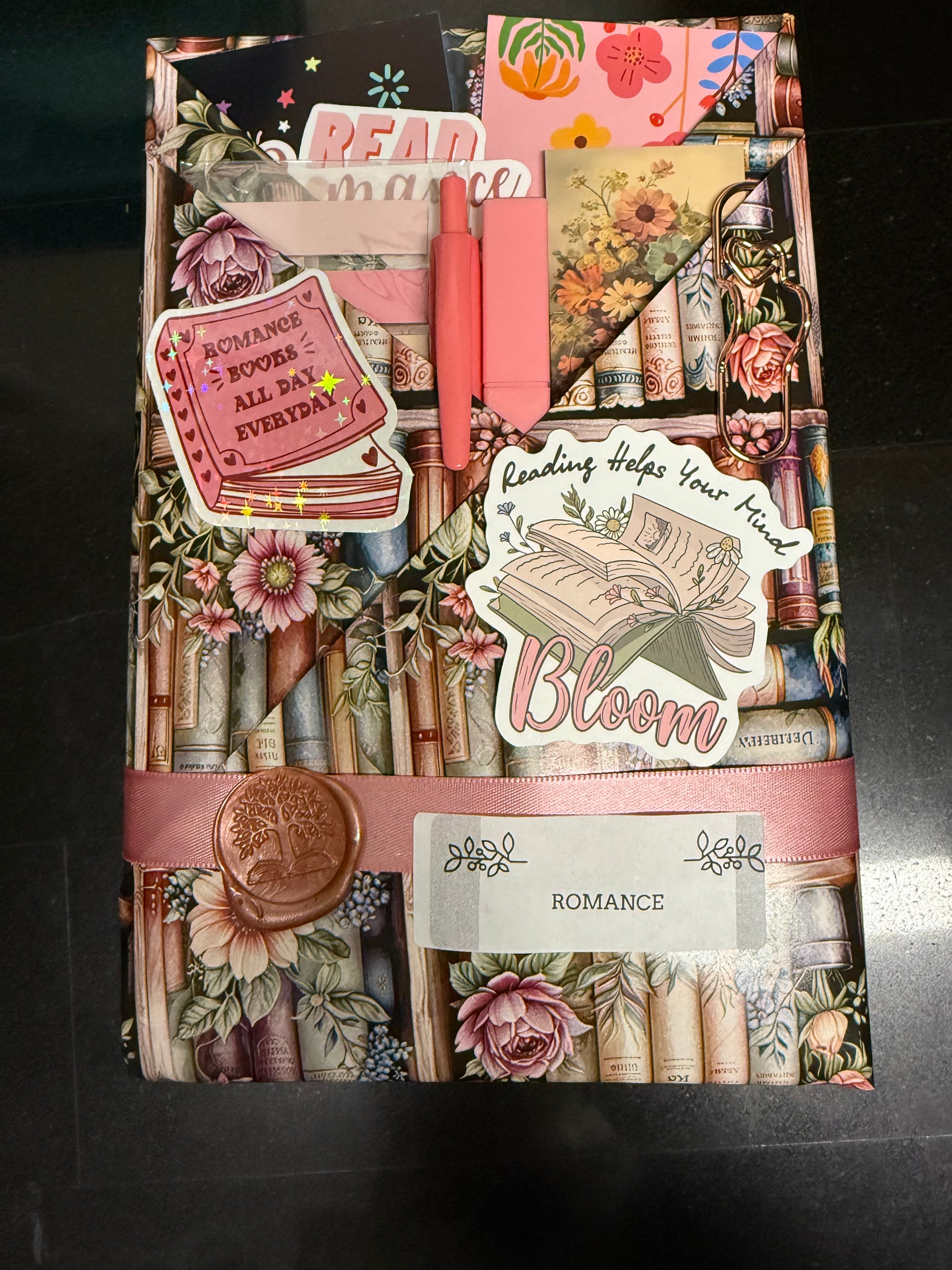 These come with book (you choose the genre), stickers, pen, bookmark, highlighter, book review and a book clip.Â